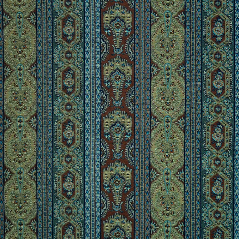 Indulge in sophistication and luxury with the Sagar Morocco P/Kaufmann Fabric. With a vintage paisley stripe, this fabric exudes a classic vintage feel that will elevate any space. Experience the elegance and charm of the past in your home with this exclusive fabric.