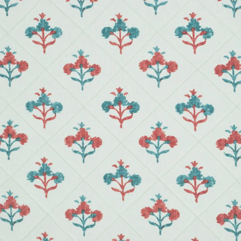 Trois Fleurs Document Coral Teal Floral Medallion Pintuck P Kaufmann Fabric