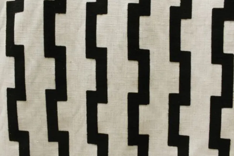 Up The Ladder Domino Black Natural Embroidered Geometric P Kaufmann Fabric