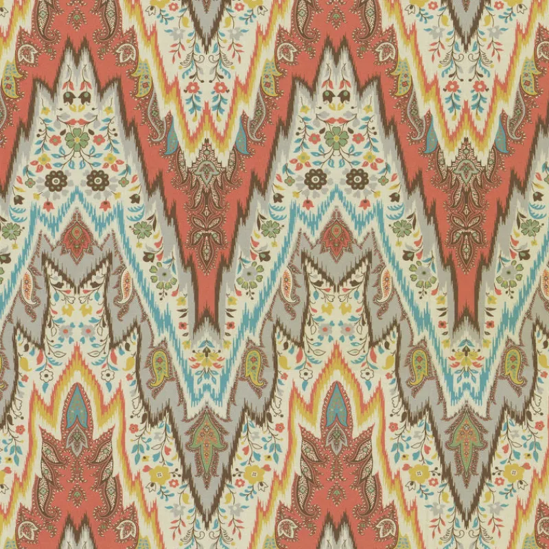 Bray Flamestitch 750690 Nectar Coral Pink Turquoise Green Yellow Chevron Flamestitch Williamsburg PK Lifestyles Fabric