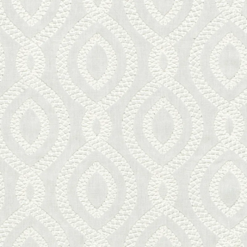 Add some pizzazz to your home decor with Pavilion EMB Coconut P/K Lifestyles Fabric. This white fabric features a geometric trellis pattern, adding a touch of elegance to any room. The embroidered details add texture and character, making this fabric a unique and stylish choice.
