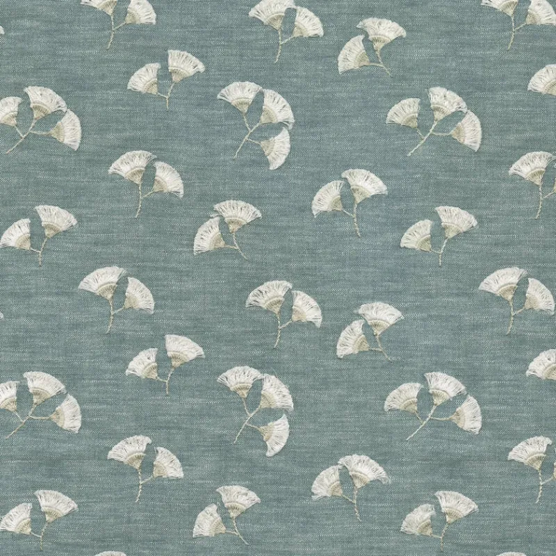 Whispering Leaf Emb 410541 Chambray Light Blue Embroidered Feather Flower PK Lifestyles Fabric