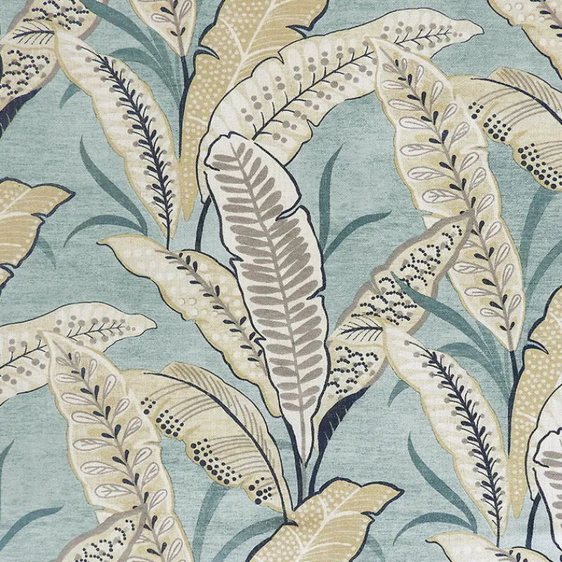 Light Blue Palm Leaf Print Amelia Mineral Regal Fabric