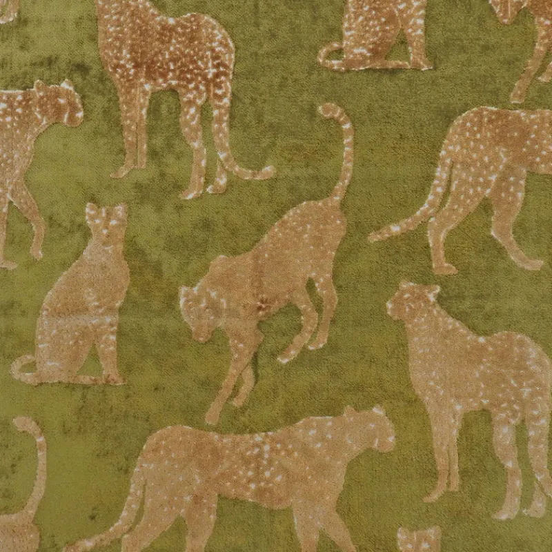 Unleash your bold and adventurous side with Aniq Fern Regal Fabric! This luxurious cut velvet fabric features fierce cheetahs, adding a daring touch to any project. Let your creativity soar with this unique and eye-catching fabric.