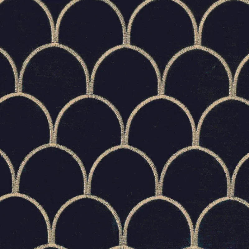 Dark Blue Gold Scallop Embroidery Velvet Arya Midnight Gold Regal Fabric