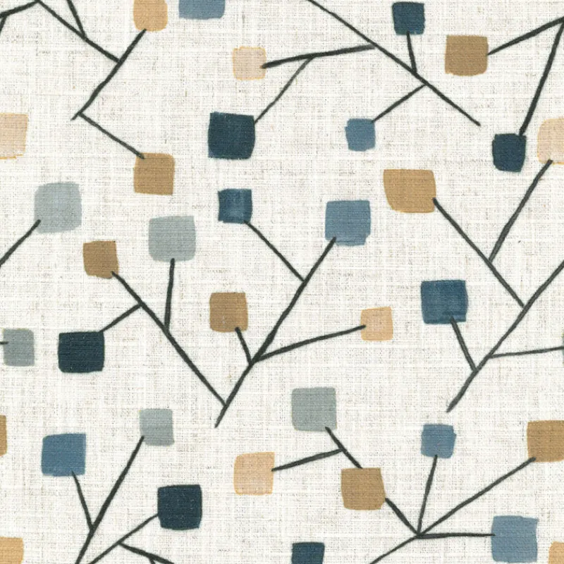 Click Prussian Blue Tan Contemporary Chiclets Tree Print Regal Fabric