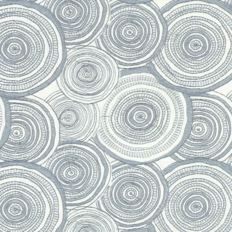Coil Bluestar Dusty Blue Embroidered Circles Spirograph Regal Fabric