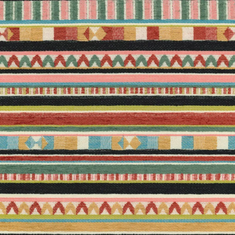 Crossing Ebony Black Multicolored Striped Chenille Regal Fabric