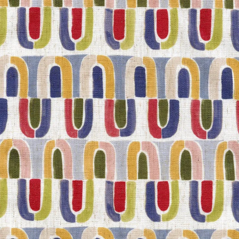 Elevate your space with Eliza Periwinkle Regal Fabric! This vibrant fabric boasts a mesmerizing half moon geometric pattern that adds a pop of color and intrigue to any room. Its unique design is sure to catch the eye and make a bold statement. Bring your vision to life with this geometric wonder!