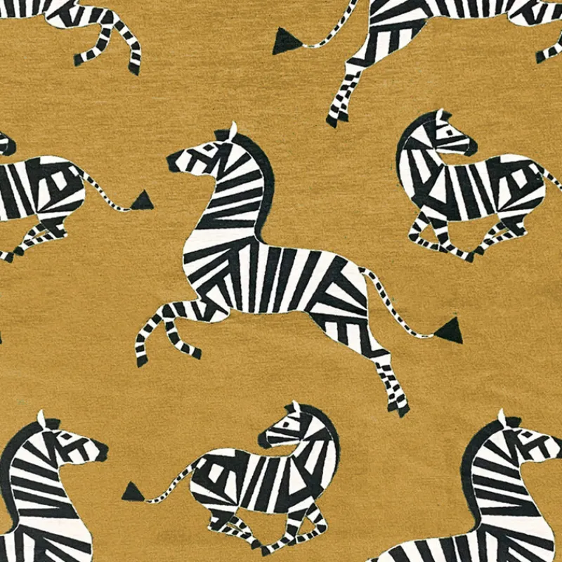 Add a touch of whimsy and elegance to your home decor with the Fanfare Saffron Regal Fabric. This luxurious cut velvet fabric features playful zebras, bringing a unique and iconic touch to any room. Perfect for adding personality and style to your upholstery and drapery projects.