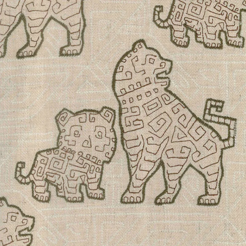 Foo Dog Mocha Brown Embroidered Animal Upholstery Regal Fabric