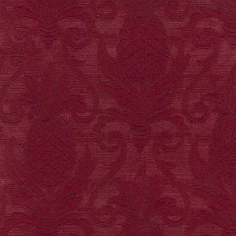 Greetings Crimson is a pretty bold red pineapple matelasse patterned upholstery fabric from Regal.