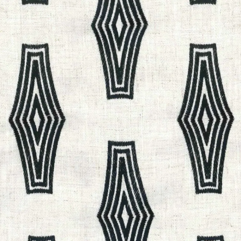 Harmon Black is a pretty neutral cream and shiny bold black diamond embroidered fabric from Regal.