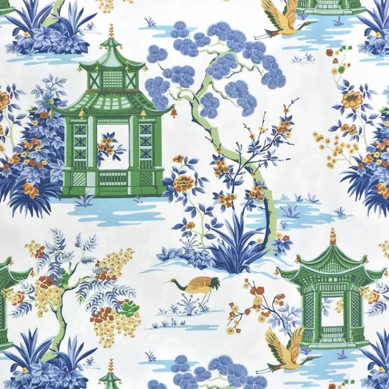 Transform any room into a tranquil and elegant retreat with our Harmony Bluebell Regal Fabric. Featuring a stunning Asian pagoda print, this fabric adds a touch of sophistication and charm to any space. Elevate your home decor and create a serene ambiance with this luxurious fabric.