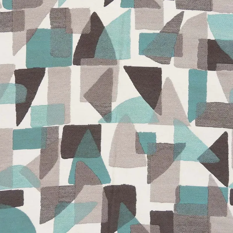 Hayes Teal is a cool turquoise blue and grey fabric featuring contemporary geometric shapes from Regal.