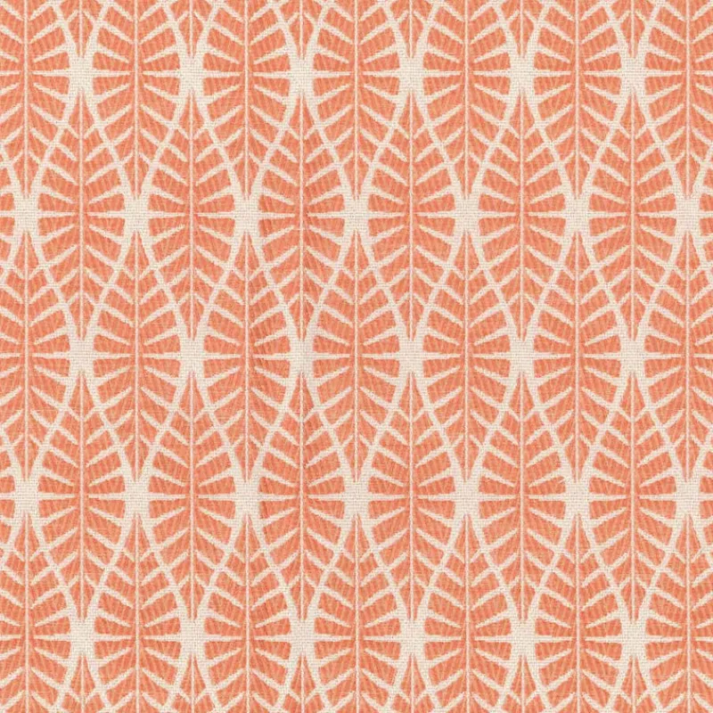 Lara Coral is a fun contemporary bright pink leaf ogee patterned fabric from Regal.