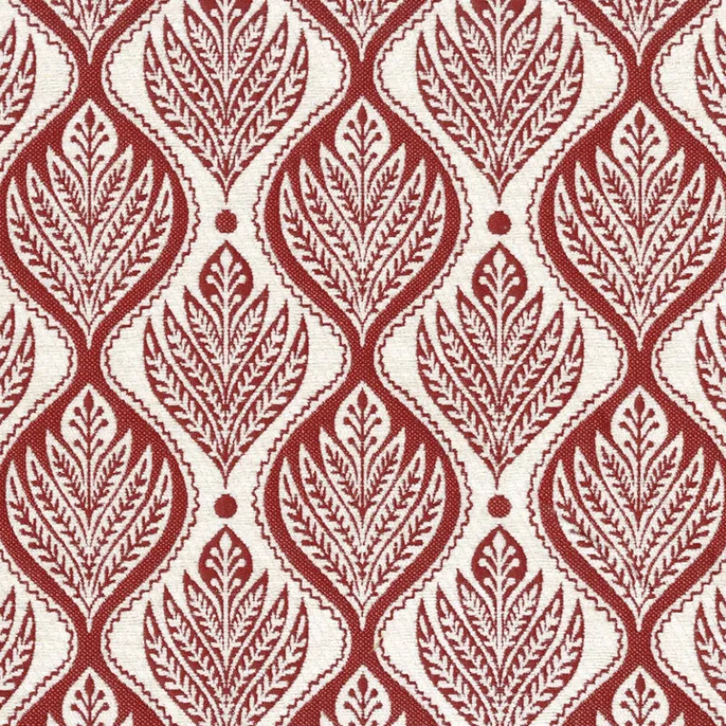Unleash your inner royalty with Larissa Crimson Regal Fabric. This luxurious fabric boasts a leafy trellis damask pattern that adds a touch of elegance to any space. Perfect for curtains, upholstery, and more, this fabric will elevate your home decor to new heights.