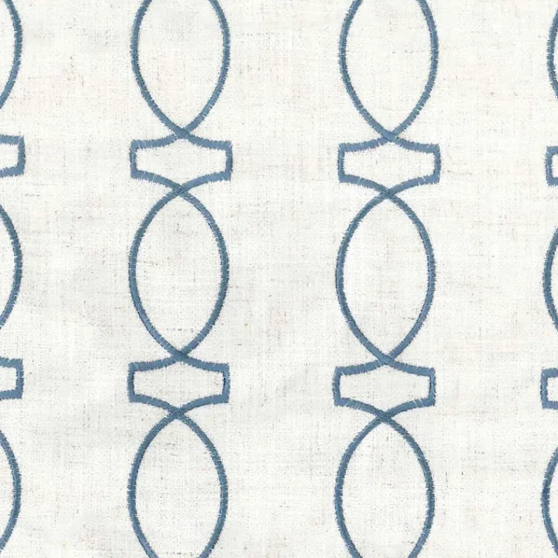 Moreno Lake is a pretty dusty blue embroidered trellis fabric from Regal.