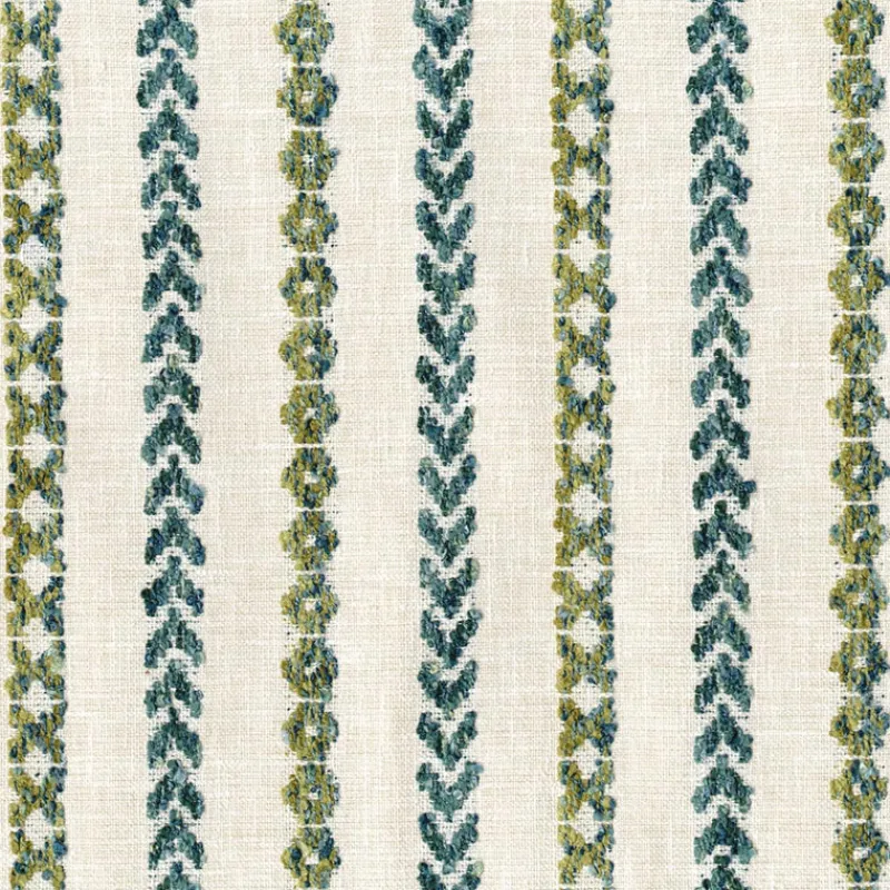 Elevate your home decor with the luxurious Nottingham Pesto Regal Fabric. The geometric chenille stripe adds a touch of sophistication to any space. Experience the comfort and style this fabric brings, making your space feel like a royal palace.