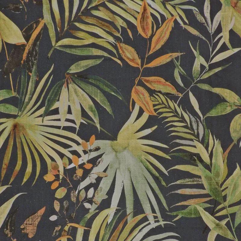 Experience the bold and daring allure of our Riviera Charcoal Regal Fabric! With a large leaf tropical print, this fabric will transport you to a tropical paradise. Add a touch of adventure to your home with this statement piece. Get yours today!