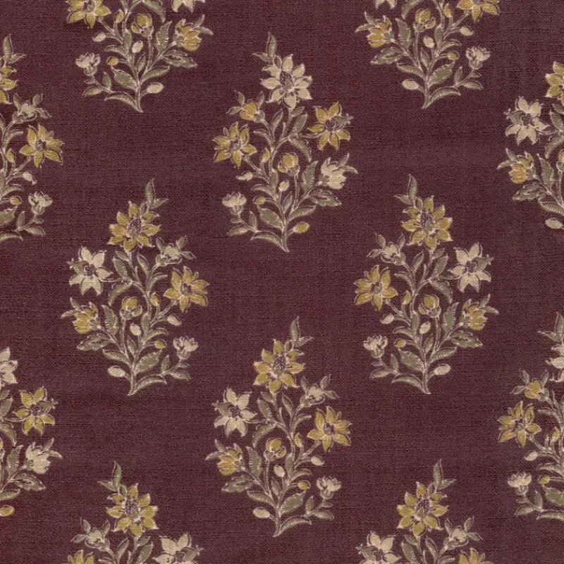 Add a regal touch to your home with Siri Currant Regal Fabric. This floral block printed fabric is sure to bring a touch of elegance and charm to any room. Transform your space with this unique and stylish fabric!