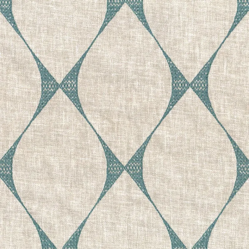 Elevate your space with the playful and unique Sojourn Cassis Teal Fabric. This stunning embroidered fabric features a trendy geometric trellis pattern, adding both style and functionality to any room. Bring a touch of quirkiness to your decor and make your space stand out!