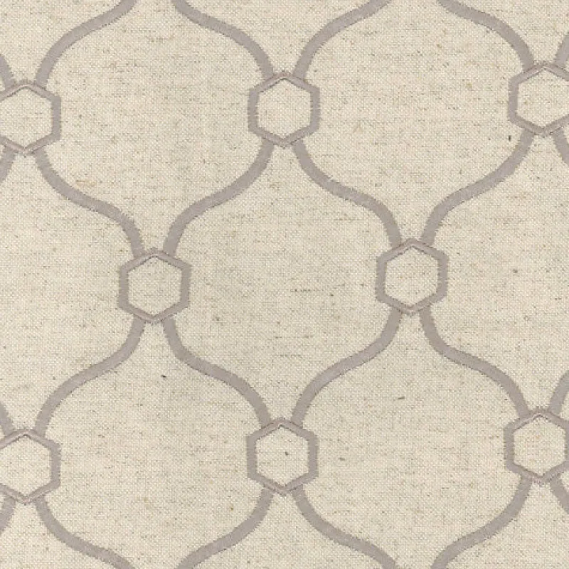 Taupe Grey Embroidered Geometric Quatrefoil Vera Silver Regal Fabric