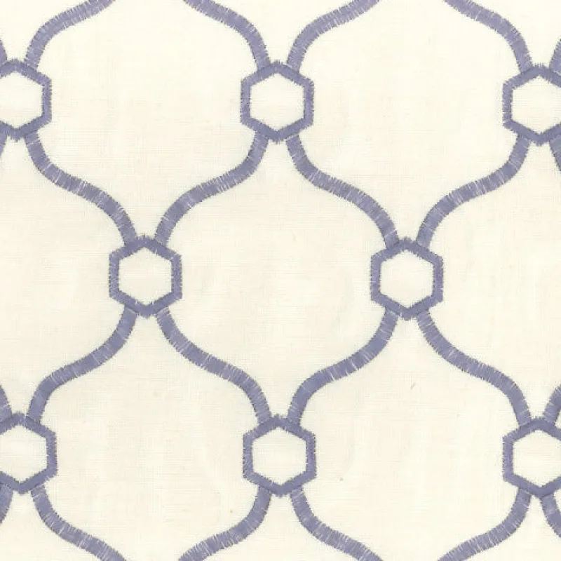 Light Blue Embroidered Geometric Quatrefoil Vera Wedgewood Regal Fabric