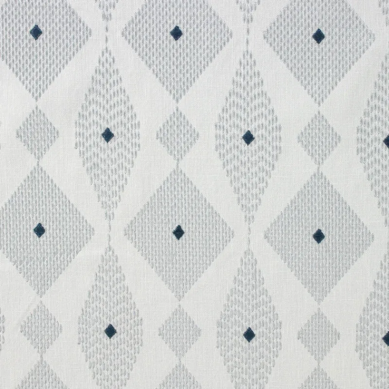 Indulge in the luxury of Baci Rain Richloom Fabric. This exquisite fabric boasts a stunning geometric design and intricate embroidery, elevating any project to a work of art. Crafted with the finest materials, this fabric exudes sophistication and elegance. Enhance your home decor or fashion creations with Baci Flax Richloom Fabric.