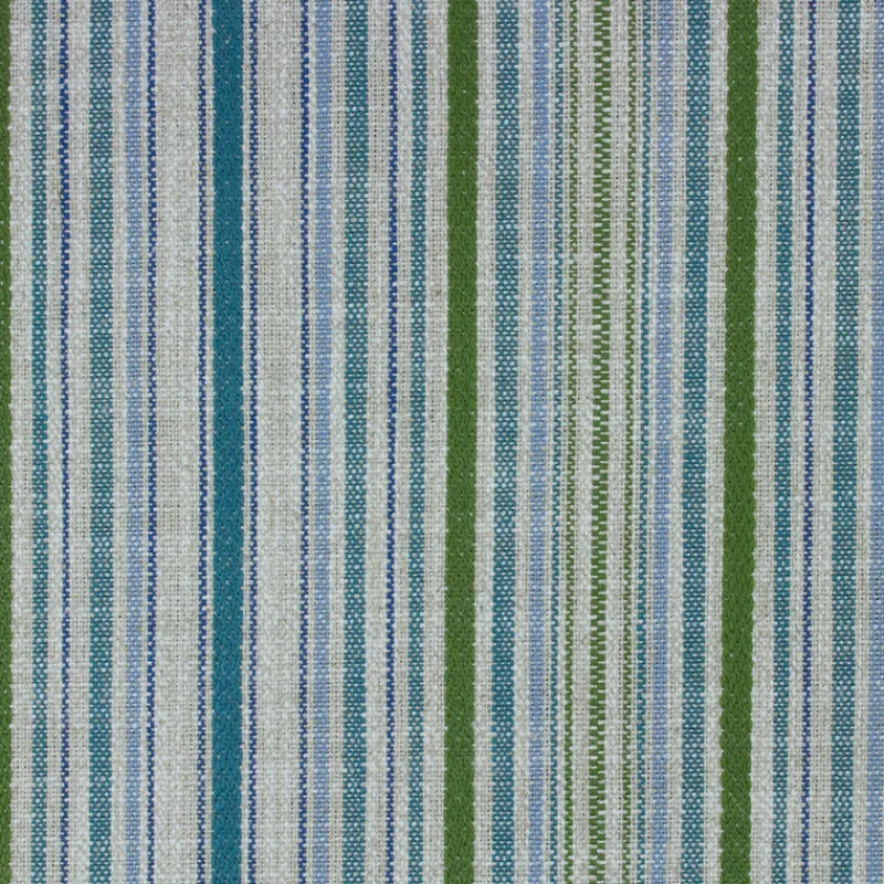 Add a touch of color and playfulness to your home decor with the Linear Garden Party Richloom Fabric. This multi-colored fabric features a stripe pattern with tones of green and blues. Perfect for adding a unique touch to any room.
