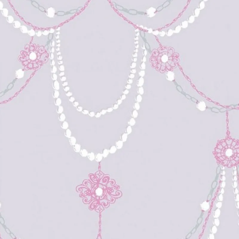Pearls and necklaces chains drape across this light purple wallpaper to create girly and glamourous wallpaper.