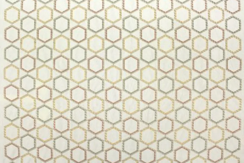 Intelligencer Potpourri Pale Orange Yellow Green Embroidered Honeycomb Hexagon Geometric Swavelle Mill Creek Fabric