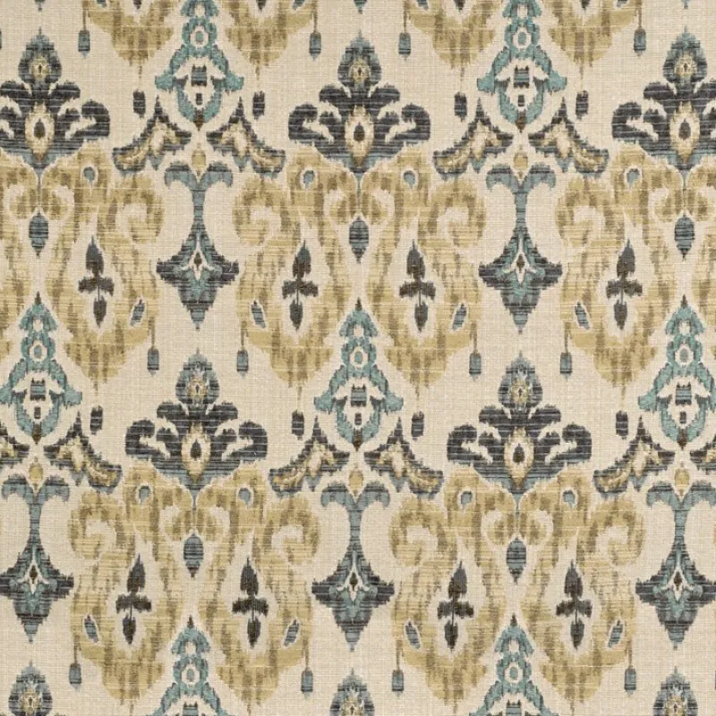 Sandoa Spa is a pretty blue and tan soft chenille ikat patterned upholstery fabric from Swavelle Mill Creek.