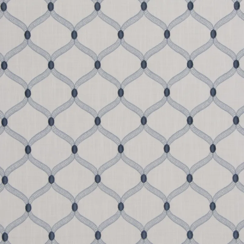 Secret Admirer Marina Blue White Embroidered Ogee Trellis Swavelle Mill Creek Fabric