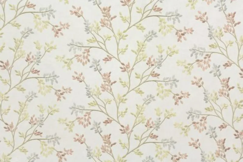 Story Teller Opal Coral Yellow Grey Embroidered Leaf Vine Swavelle Mill Creek Fabric