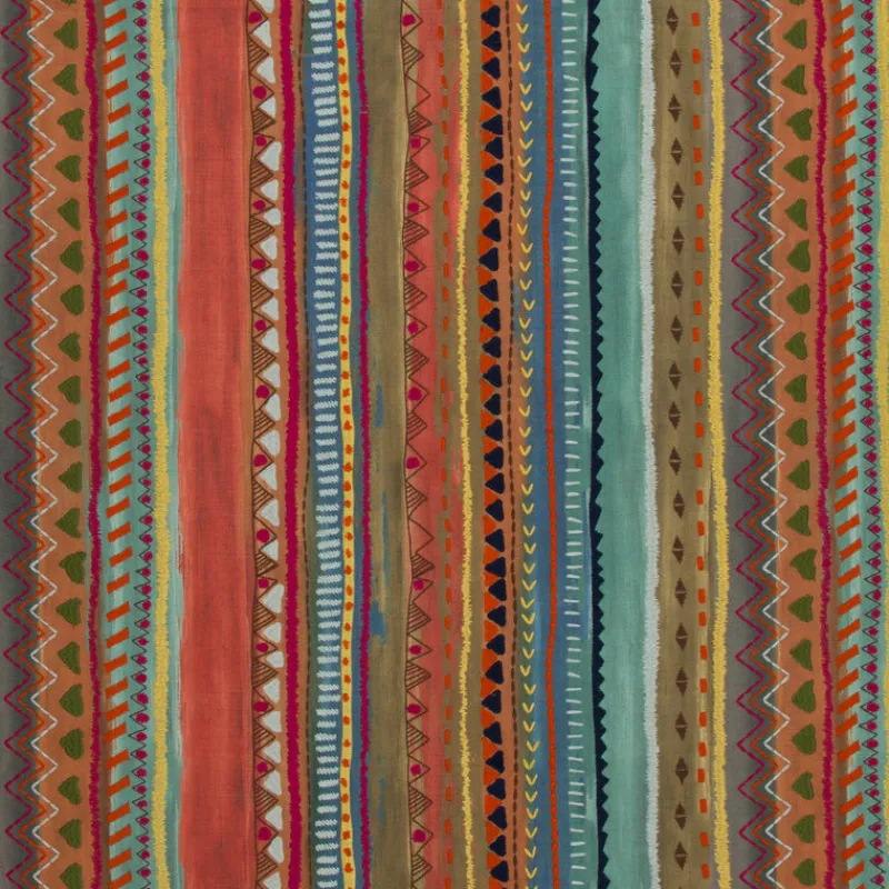 Classic Charm Fiesta Bright Pink Orange Blue Green Yellow Contemporary Embroidery Stripe Zig Zag Swavelle Mill Creek Fabric