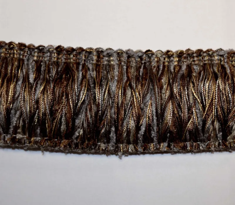 LF500N 422 is a simple brown and light blue 2 inch brush fringe from Classical Elements available and in stock at The Fabric Co. LF500N 422 could make a perfect little finishing touch to your next decorating project!