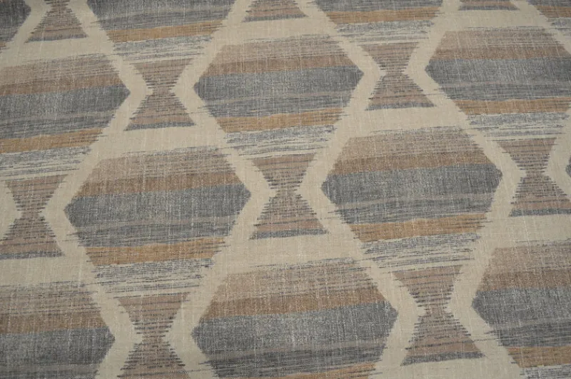 Add a touch of modern elegance to your home with Zara Cafe’s from Harper Home Fabric. Featuring a geometric diamond pattern in shades of blue and tan, this fabric is a stylish choice for any home decor project. Elevate your space with this unique fabric today!