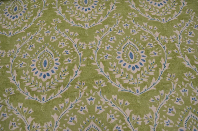 Add a touch of vintage charm to your home decor with this vibrant green and blue upholstery fabric. Perfect for adding a pop of color and style to any room. Upgrade your space with this unique piece!