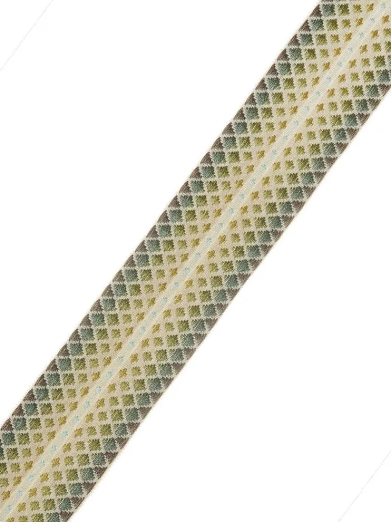 04543 Seaglass is a fun blue green ombre diamond tape trim from Trend hat is in stock and available at The Fabric Co. 04543 Seaglass could make a stunning addition to your next decorating project!