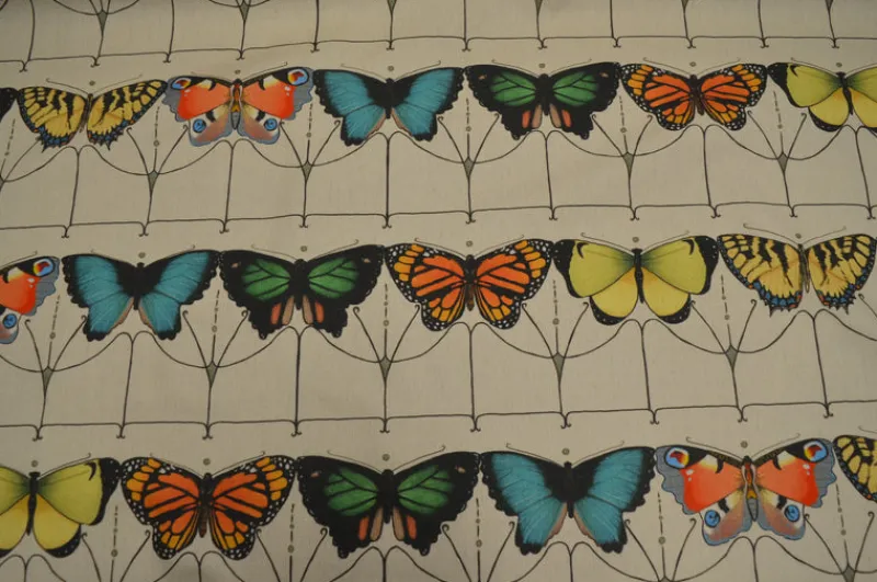 Hamilton Fabrics presents Papillon Carnival, a refined cotton textile featuring an array of precisely illustrated butterfly specimens. From majestic Monarchs to elegant Swallowtails, each winged beauty is captured in vivid, lifelike hues on this sophisticated specimen chart. Versatile in application, this distinguished fabric transforms interiors through elegant window dressings, select upholstery pieces, sumptuous bedding collections, or artfully crafted accent pillows.