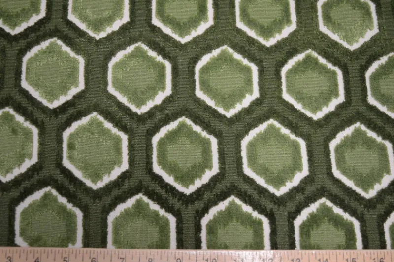 Ruggles Emerald is a vibrant green velvet pattern. This hexagonal fabric is the perfect shades of light and dark green. This is a perfect way to bring a light feel to any decor.