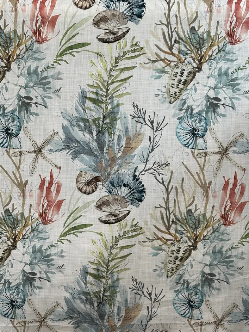 Experience the tranquil and breezy vibes of the Caribbean with our Seafarer Ivory Hamilton Fabric. With a touch of ocean and island feel, this fabric features delicate shells that will transport you to a tropical paradise. Perfect for adding a touch of relaxation and elegance to any room.