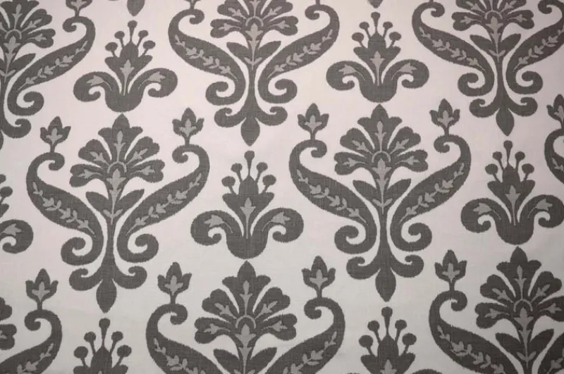 Carnation Gray is a neutral grey and white damask printed linen fabric from Noveltex at The Fabric Co.