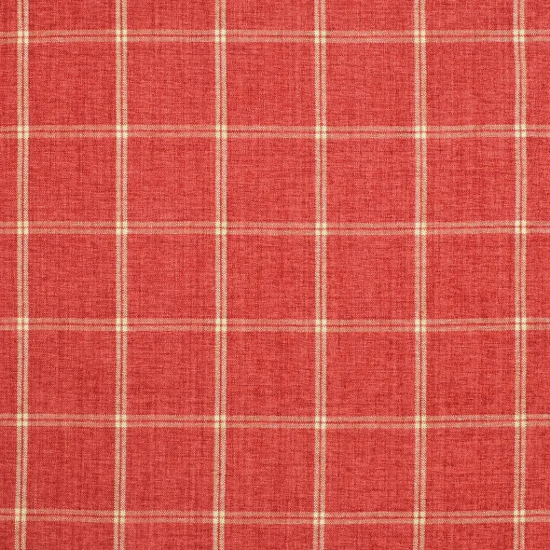 Campbell Fuchsia Chenille Plaid P Kaufmann Fabric in a delicious combination of strawberry pink and cream! Feel the soft chenille texture and admire the charming windowpane plaid, perfect for a country or shabby chic style.