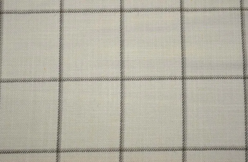 Bayswater Natural is a simple neutral grey and white window pane plaid upholstery fabric from R & M that is in stock and available at The Fabric Co.