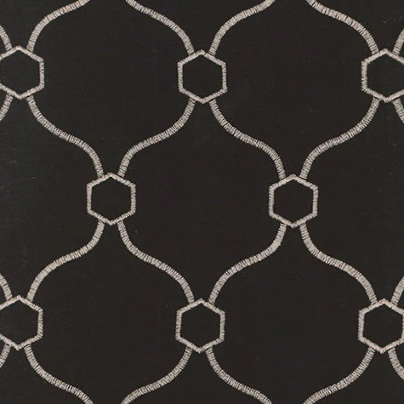 Add a touch of elegance to any project with Vera Mica Regal Fabric. The black and grey embroidered geometric quatrefoil design adds a modern twist to a classic pattern. Perfect for creating a sophisticated look that is sure to stand out.