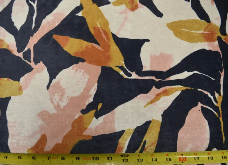 Add a pop of color to any space with Cicely Sunrise Fabric. This modern, abstract fabric features a unique floral design with blue, gold, and pink accents. Perfect for adding a playful touch to your home decor. (Colorful, vibrant, and statement-making!)