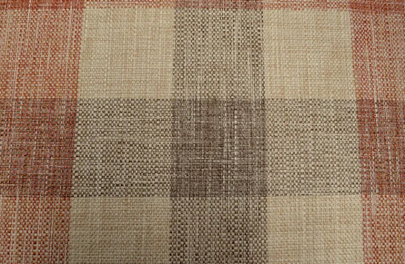 Plateau Canyon is a lovely brick red, taupe, and beige colored buffalo check fabric from Richloom that is available and in stock at The Fabric Co. Plateau Canyon could make a stunning statement in your next upholstery or decorating project!