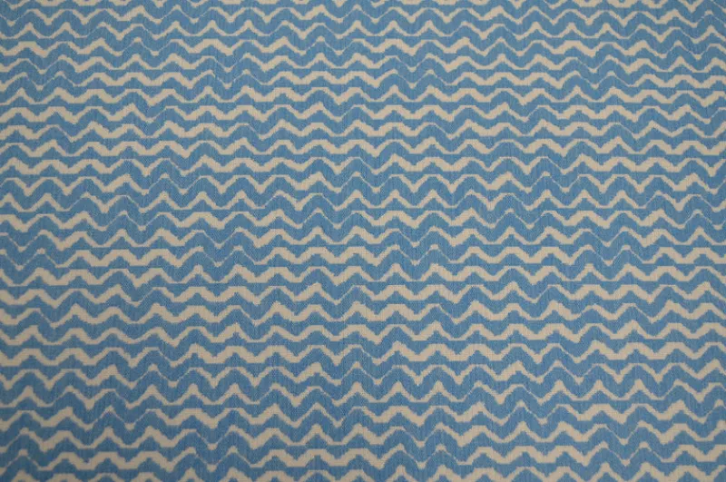 Indulge in a touch of sophistication with our Wiggle Cerulean Milliken Outdoor Fabric. The geometric stripe design in light blue and white adds a hint of elegance to any outdoor space. Enjoy luxurious outdoor living with our premium fabric.